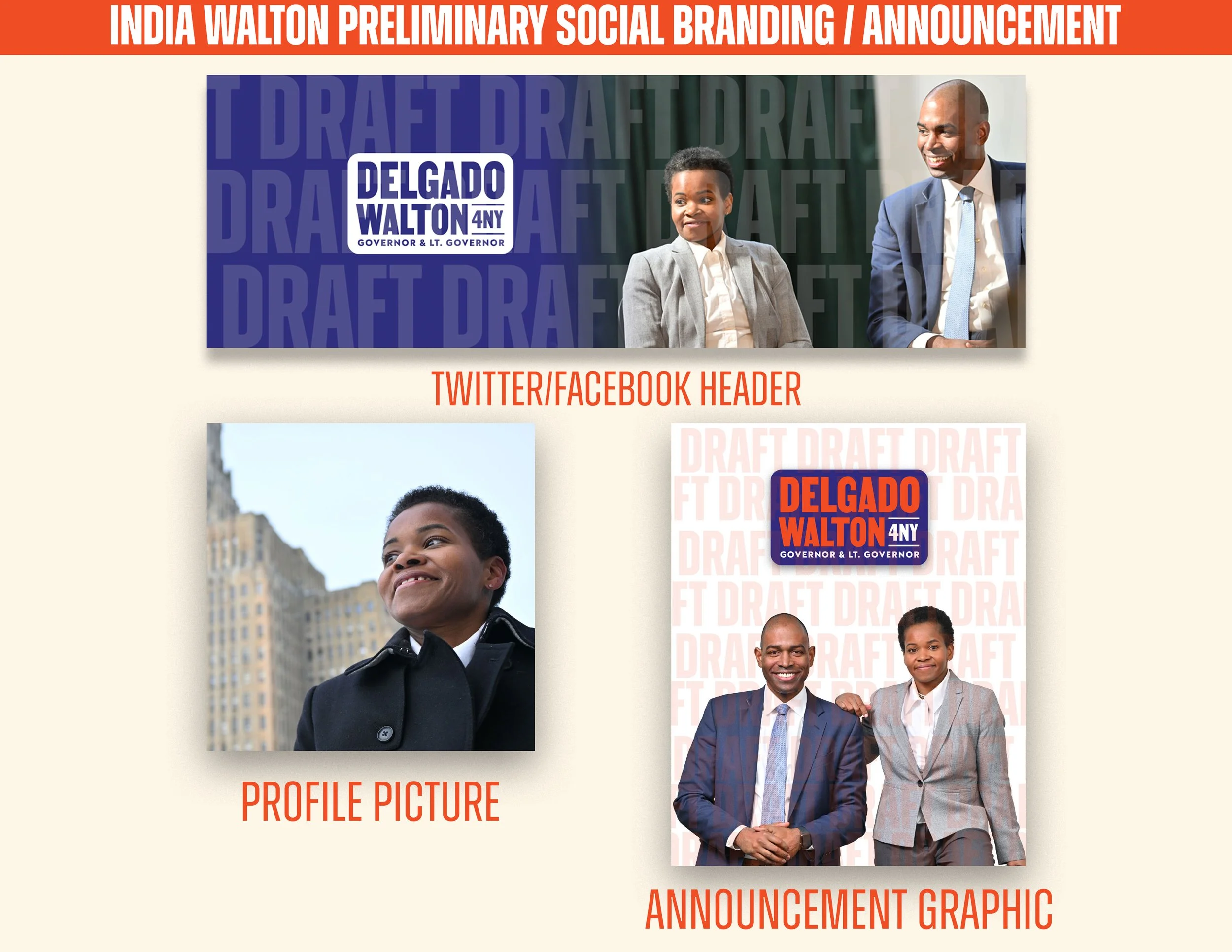 I used graphic design as a way to engage with potential voters and donors across our social media. Building off our existing brand guidelines, I developed a refreshed creative identity with bold colors, texture, and imagery. When India Walton joined our campaign, I was tasked with rebranding her existing social media accounts.